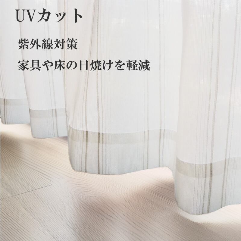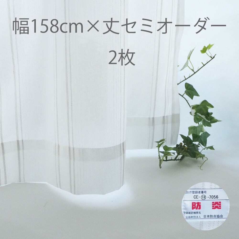 防炎・断熱・遮像 レースカーテン グレーストライプ 幅158cm 丈セミオーダー