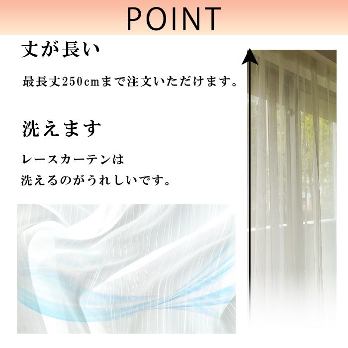 【幅105cm×2枚セット】レースカーテン【ストライプ柄】 少し幅広 最長丈250cmまで1cm単位 長いカーテン ハギなし(幅の継ぎ目なし)
