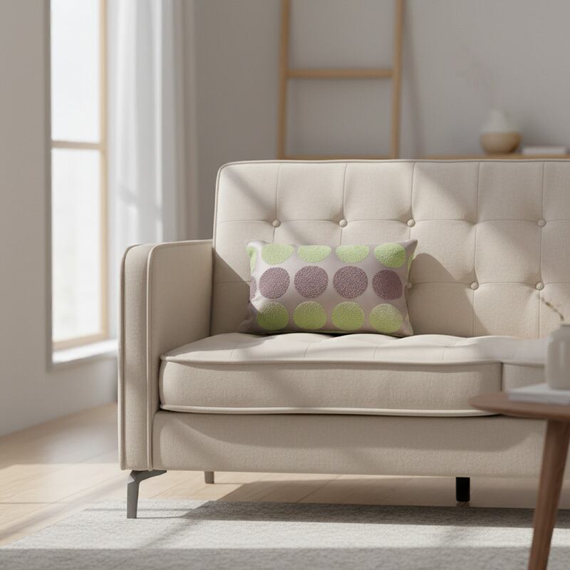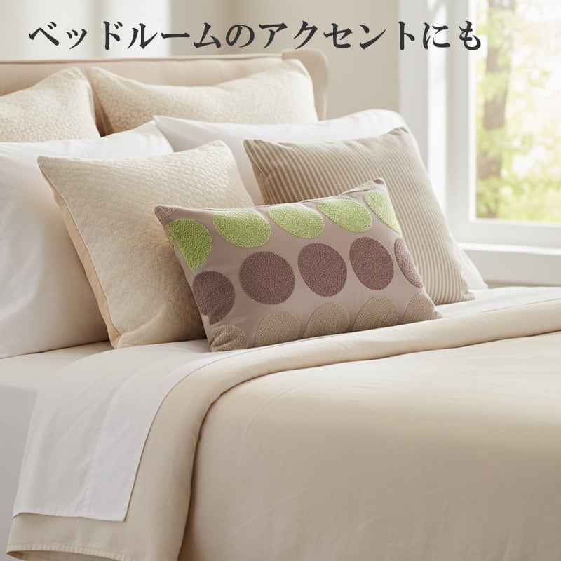 シュニール生地で作られた、可愛い水玉(ドット)柄の腰当てクッションです。